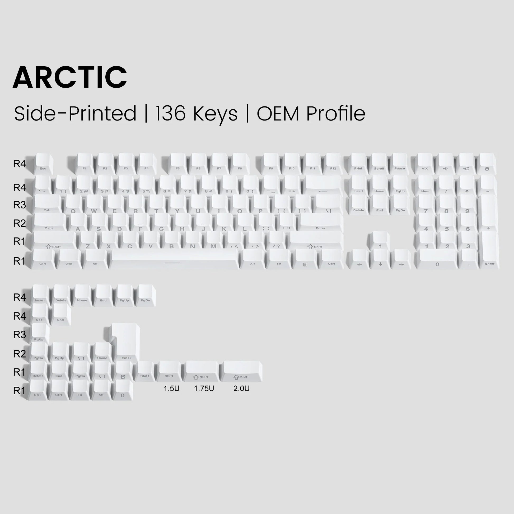 Arctic Pure White Side Backlit Doubleshot PBT Keycaps