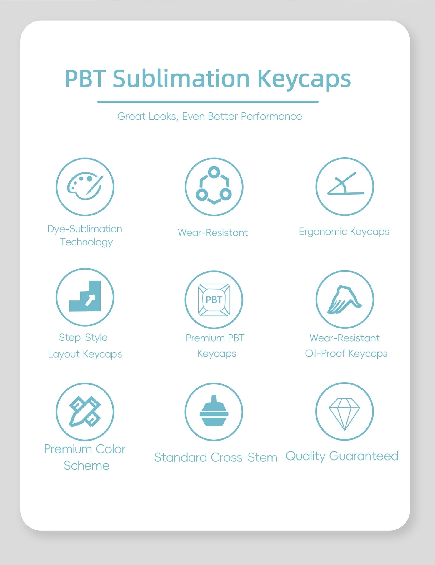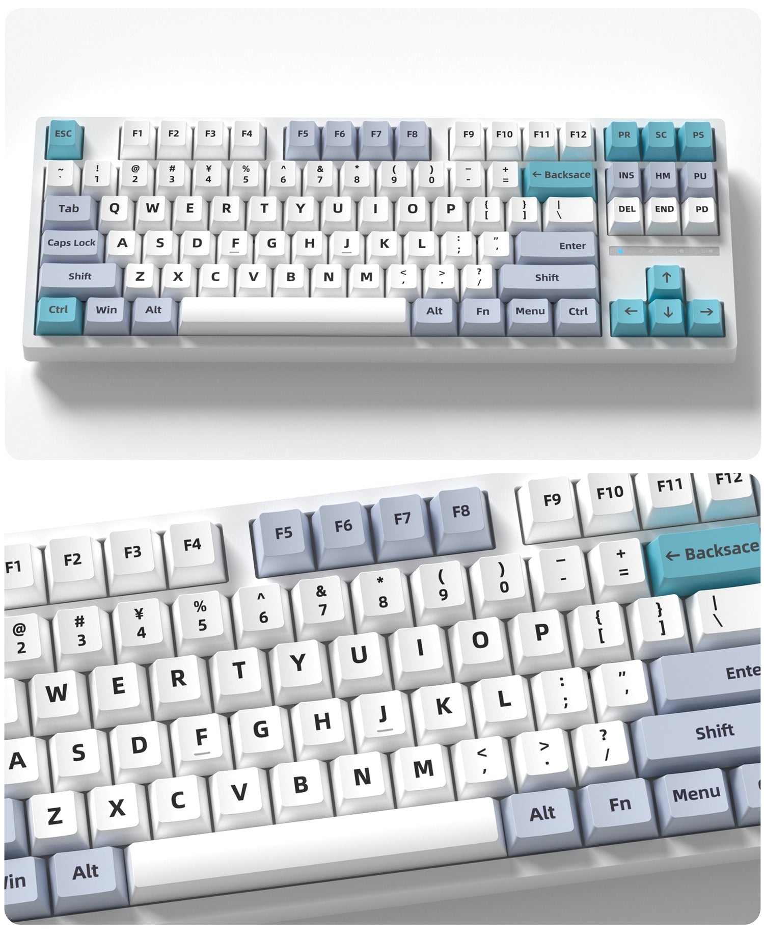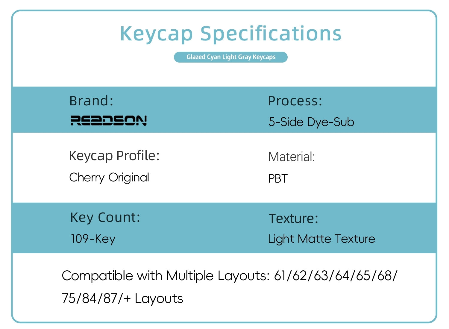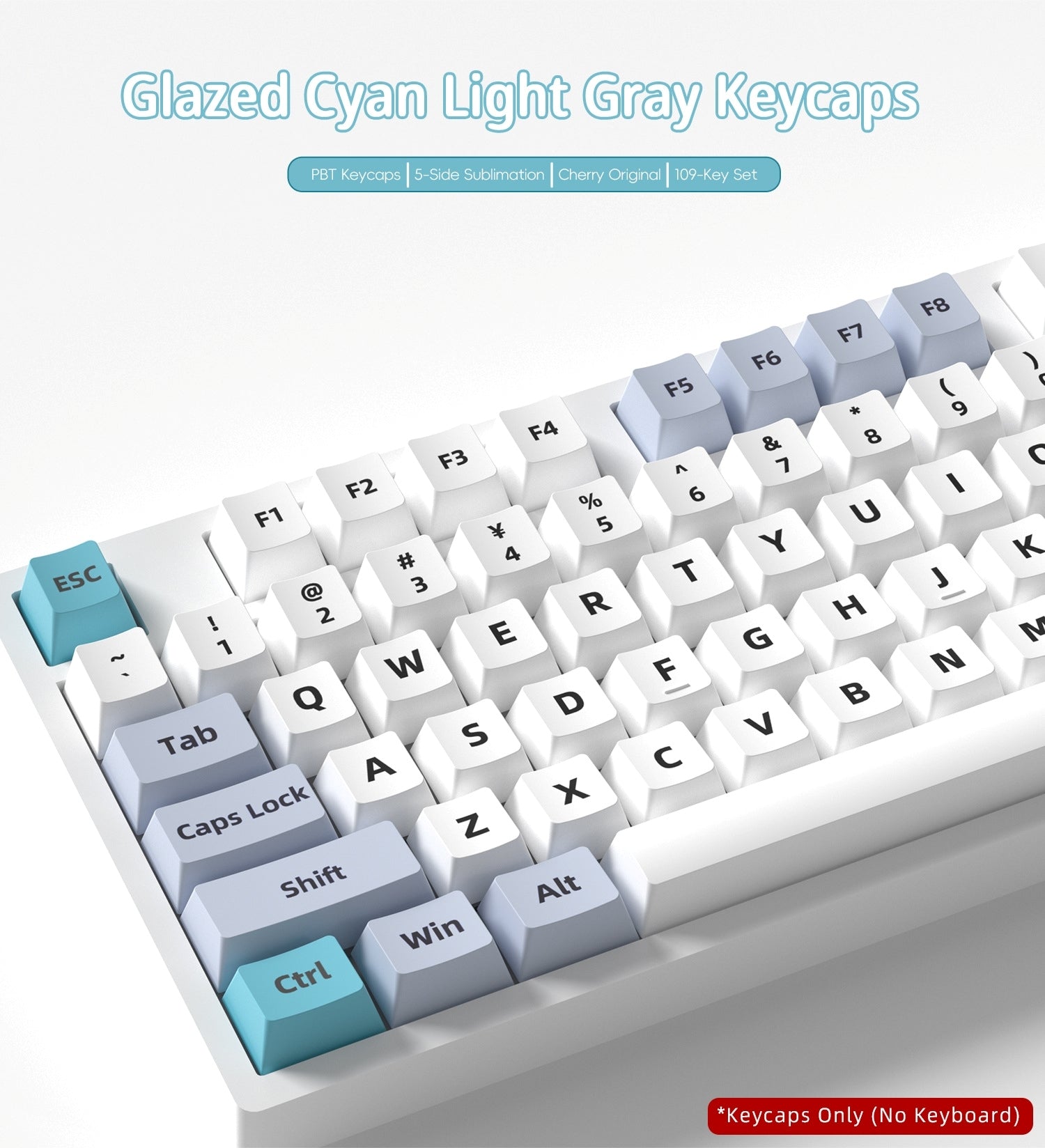 Glazed Cyan Light Gray Cherry PBT Keycaps