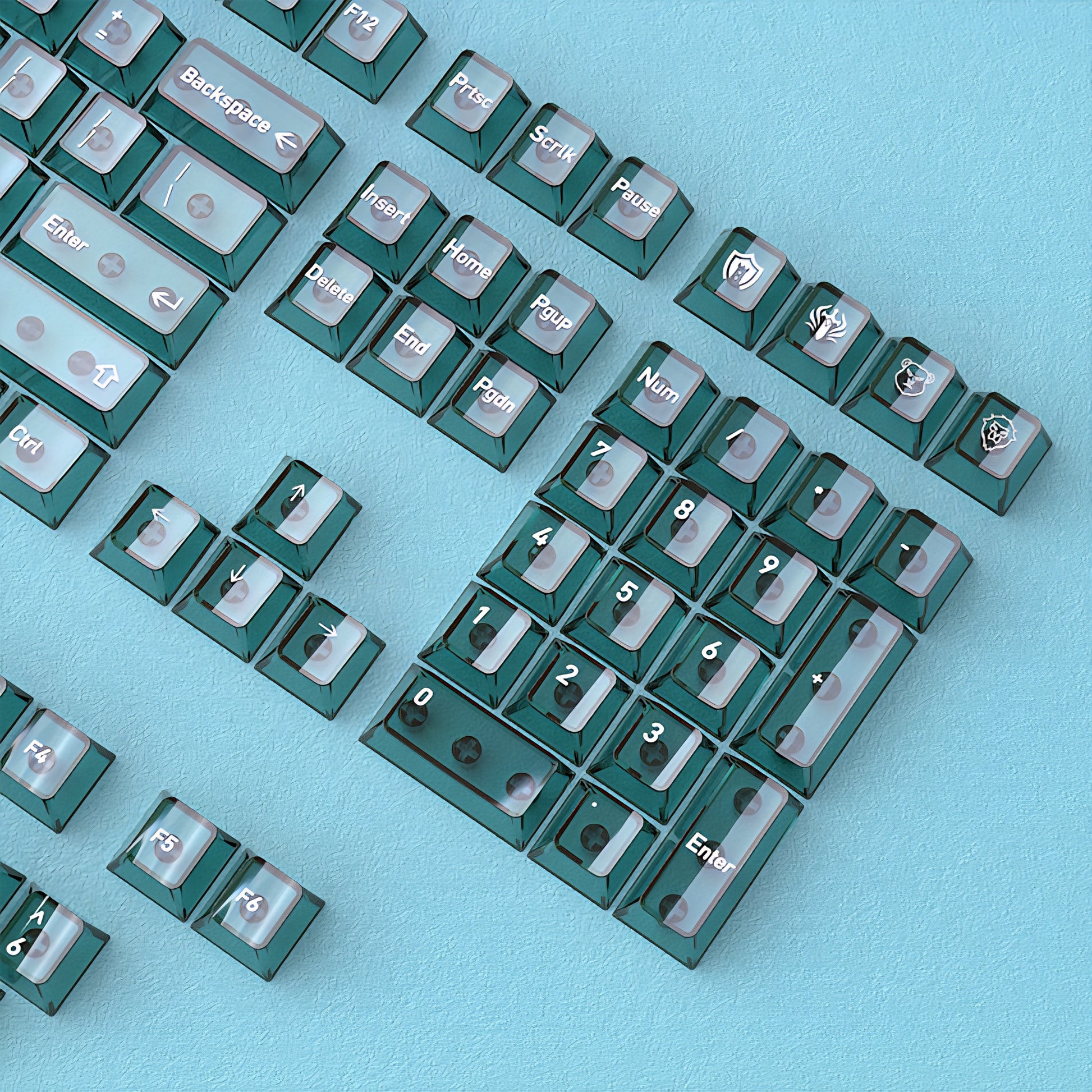 Peacock Green Gradient PBT PC Double Cherry Transparent Backlit Keycaps