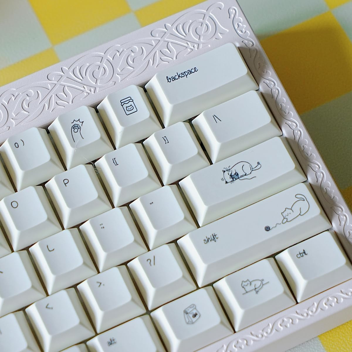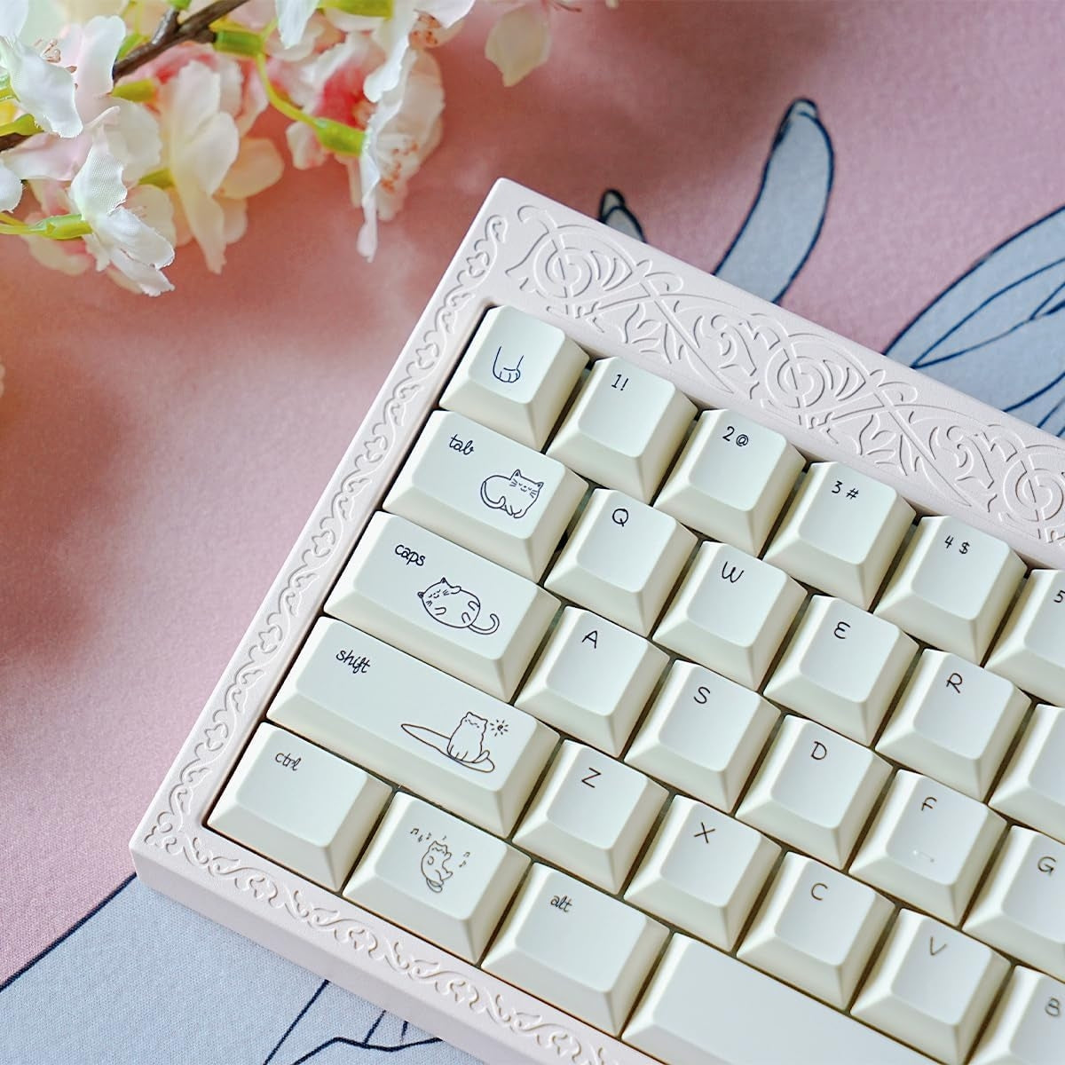 Pastel Minimalist Kitten Quality Cherry PBT Keycaps With Fancy Storage Box